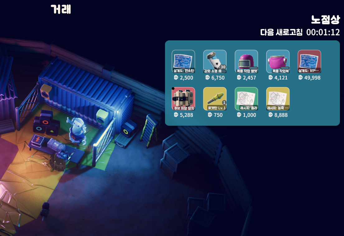 이상한 개조와 아이템을 파는 노점상 만날수 있음.