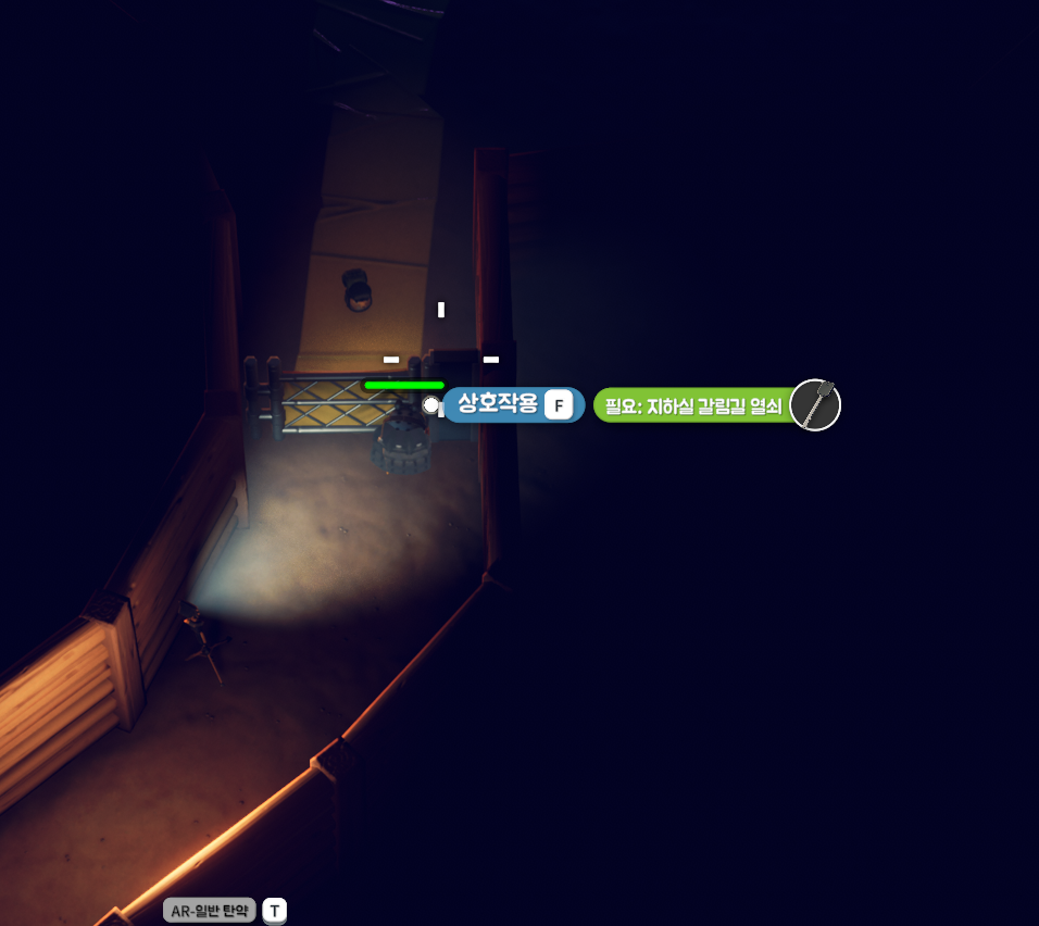 창고구역 남쪽에 있는 집에 지하실 입구 있음.