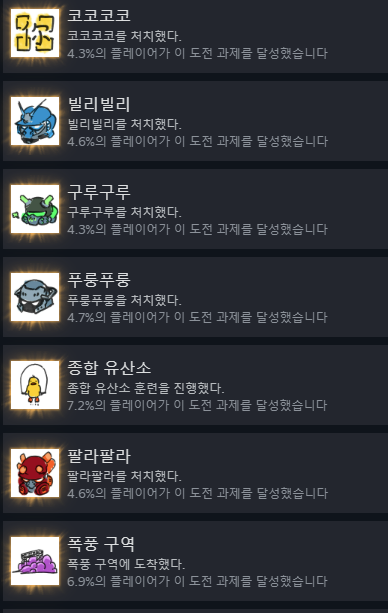 그리고 마지막 코코코코는 공간속성 데미지를 주고 공간속성 데미지에 취약한데, 마지막이다보니 그냥 최종탄 싹다들고 잡으면 되서 굳이 공간속성 총을 챙길필요는 없습니다.