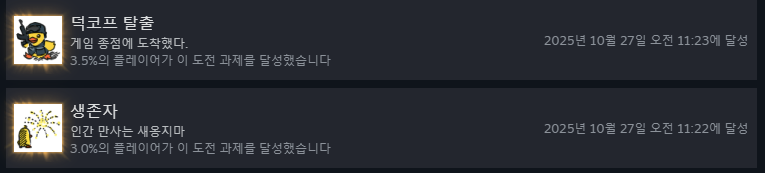 그러면 생존자 업적을 클리어할 수 있습니다. (혼자 탈출한 동료는 격추당함..)
