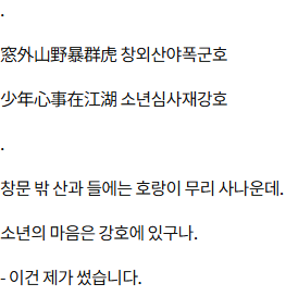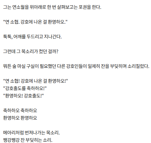작가 후기란에 써주신 작가님의 한시가, 날 강호라는 호수에 던지는 느낌이었다.