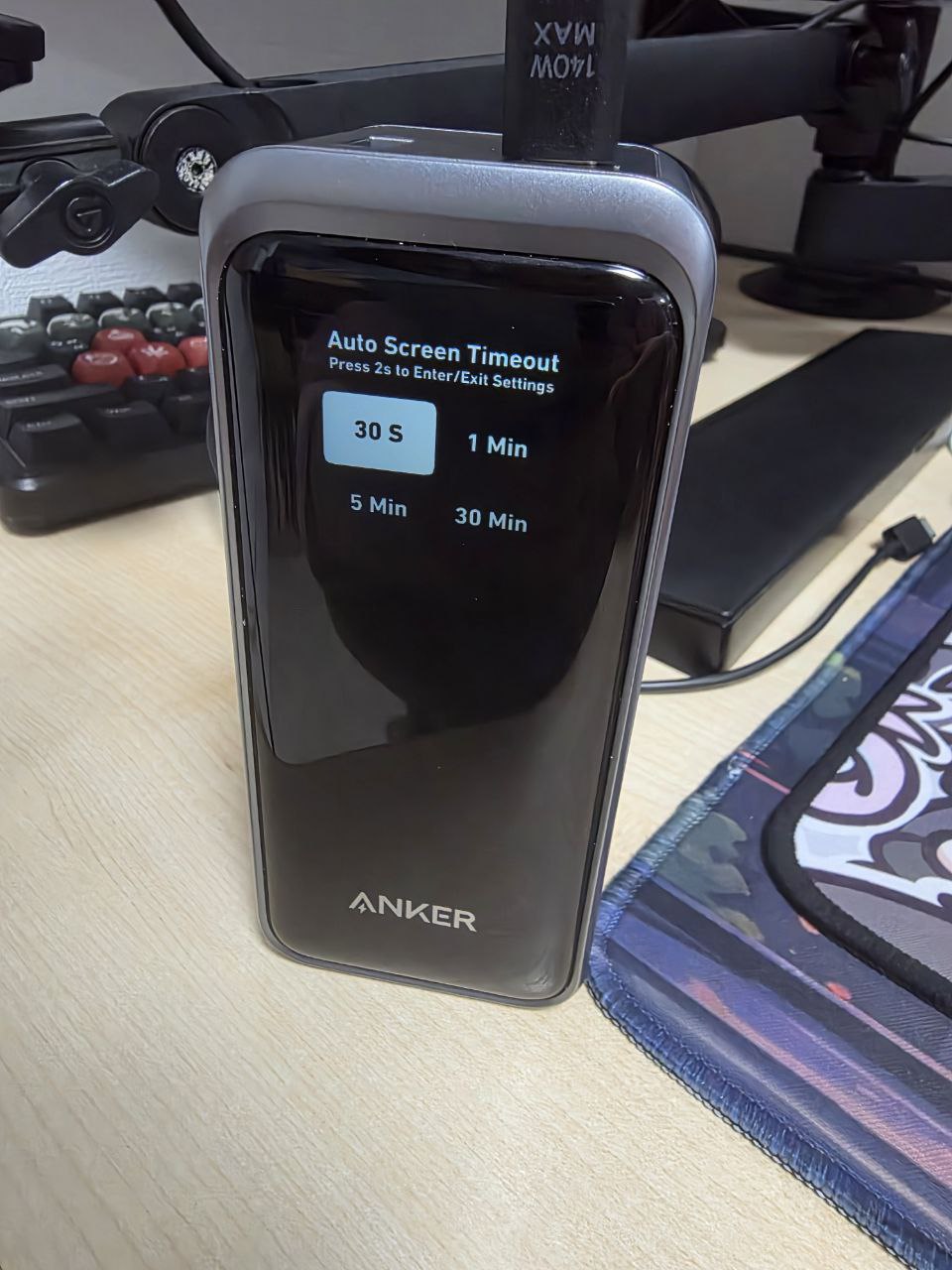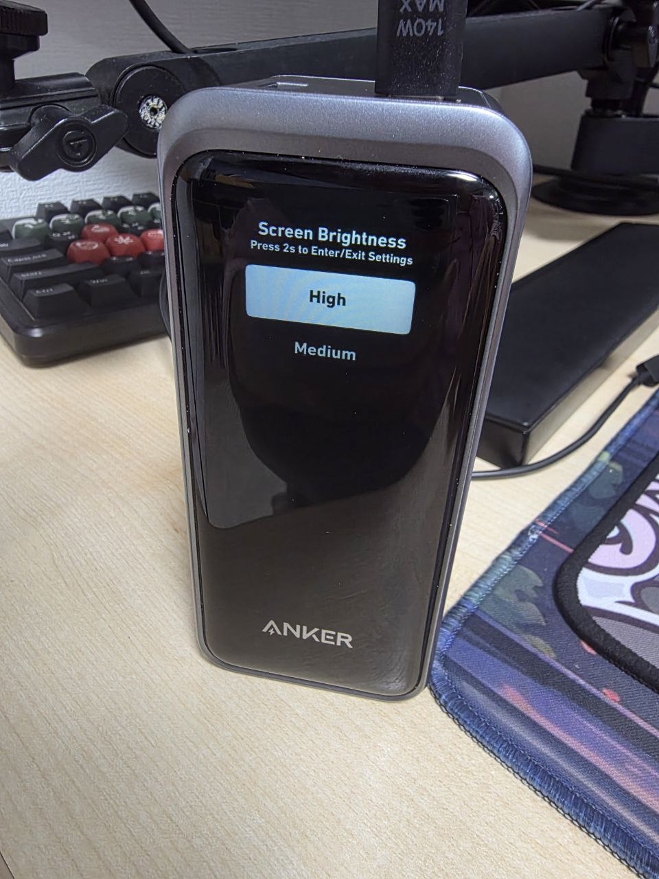 파워 뱅크 우측에는 버튼이 하나 있는데, 이건 정면 디스플레이를 활성화 하면서 간단한 세팅을 할 수 있게 해준다.