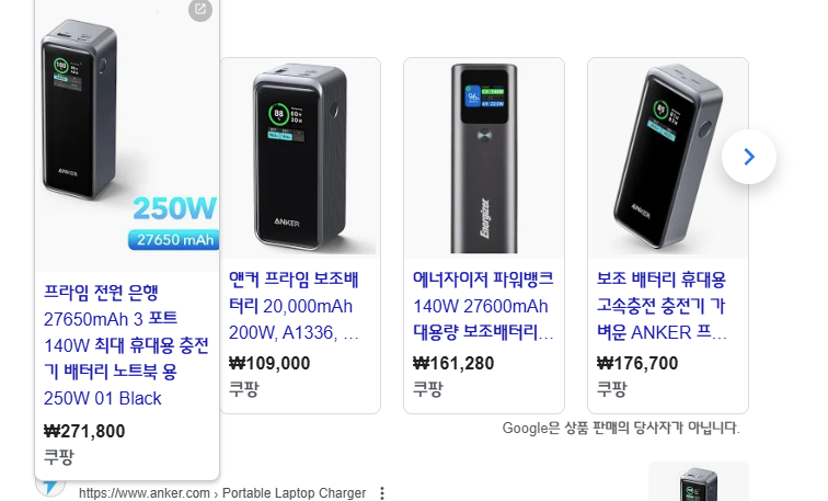 사실 나는 이미 보조배터리를 사용하는게 있었지만, 초고속 충전이 지원되지 않고 25w 충전까지만 지원되는 제품이어서 살짝 답답한 감이 있어서 단일포트 100w 초고속 충전이 지원되는 제품을 구매했다.